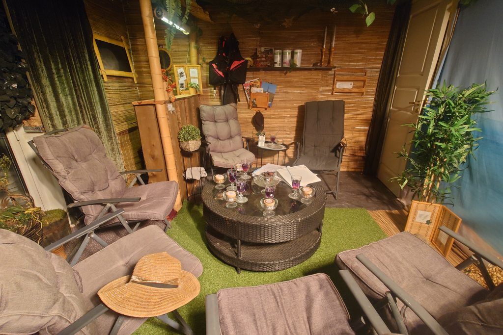 I solrummet finns plats för upp till fyra personer per tillfälle, eller så bokar du rummet för dig själv. En soltimme ger dig möjlighet att varva ner på djupet, behålla värmen i kroppen och fylla på med ny energi. Man kan välja mellan proteindryck eller den goda lokalproducerade fårglassen.